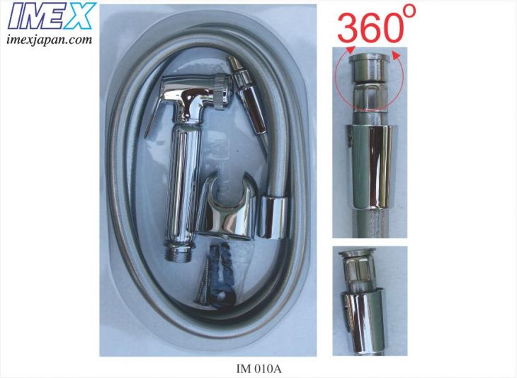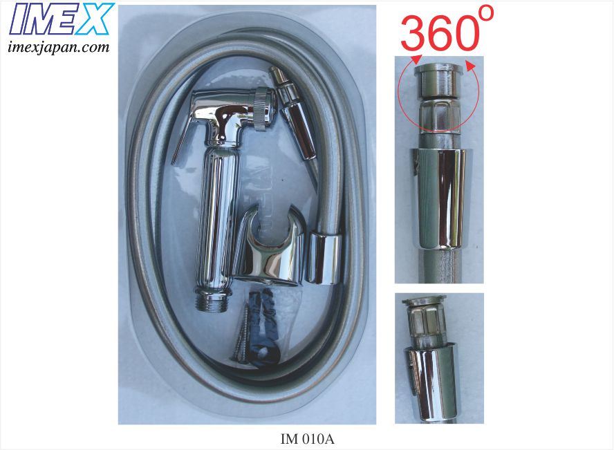 Xịt vệ sinh nhưạ bạc, đầu đồng mạ crom, dây nhựa bạc chịu áp lực nước mạnh, đầu ốc xoay 360 độ, cài nhựa ABS mạ crom