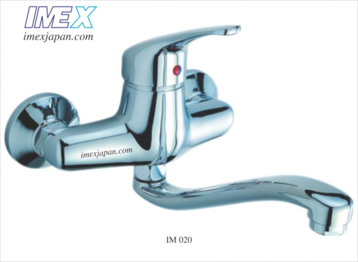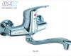 vòi tường rửa chén nóng lạnh, khóa mở nước và chỉnh nóng lạnh bằng tay gật gù, vòi dài sử dụng cho bồn 2 hộc. Đồng mạ crom