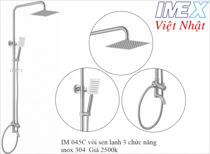 Sen tắm lạnh 3 chức năng, tắm mưa, tắm đứng, vòi xả nước linh hoạt quay. Inox mờ 304. sen tắm đứng điều chỉnh cao thấp. Khóa mở nước bằng núm vặn