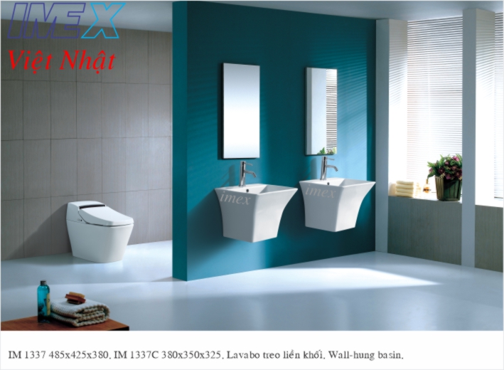 Lavabo treo liền khối IM 1337 có xả chống tràn men sứ Grade A Nano chống bám bẩn, được sản xuất trên dây chuyền công nghệ cao của hãng IMEX bảo hành phần sứ 5 năm wall-hung basin installation, kích thước 485x425x380mm.