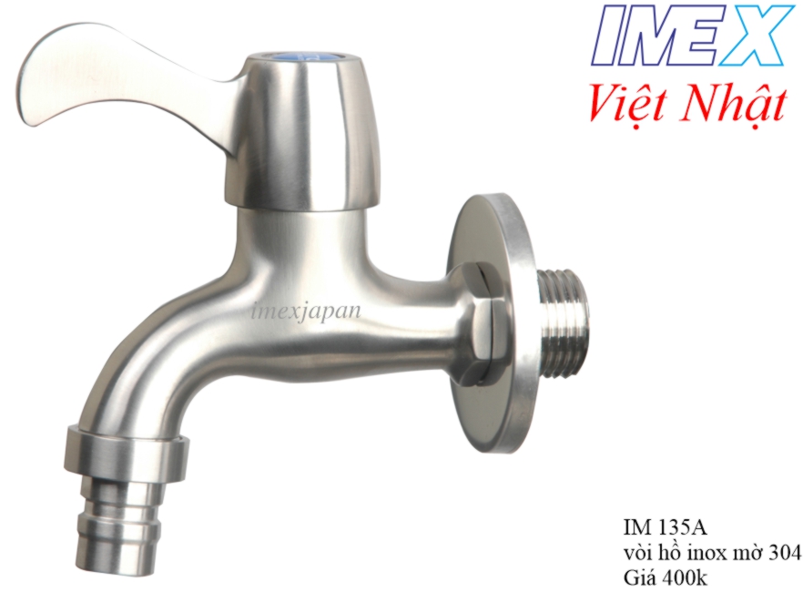 Vòi hồ, Inox mờ 304 khóa mở nước bằng tay gạt, đầu nhọn để kết nối với máy giặt hay ống nối tưới cây