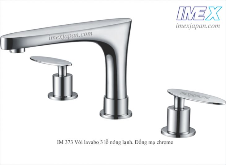 Vòi lavabo nóng lạnh 3 cục, khóa mở nước và chỉnh nóng lạnh bằng 2 tay gạt. Đồng mạ chrome gắn lavabo hoặc bàn đá 3 lỗ giá chưa xả