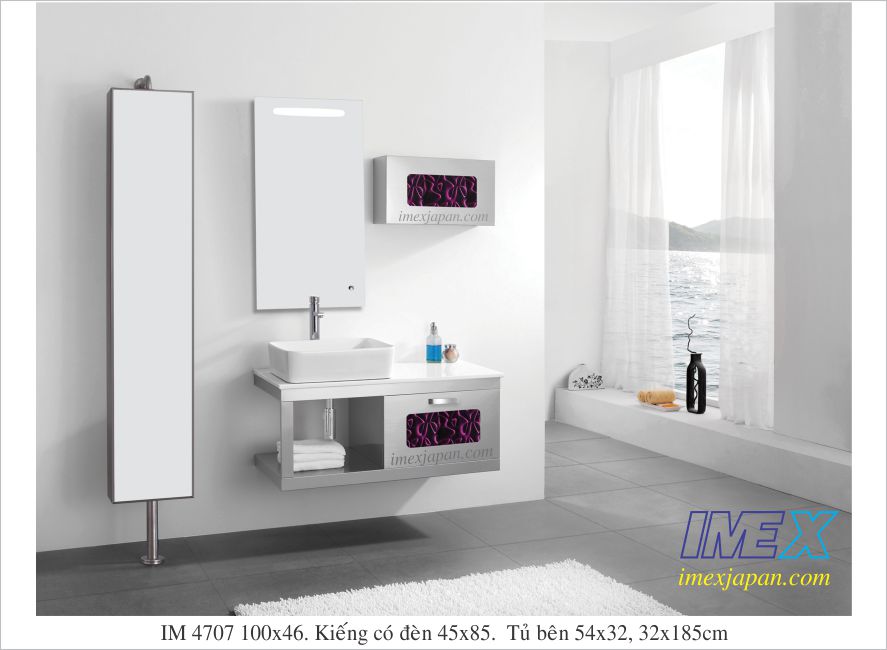 Lavabo tủ inox 304, tô sứ tráng nano chống bám bẩn, kiếng 45x85cm, tủ bên 54x32cm, 32x185cm giá 8.000.000đ