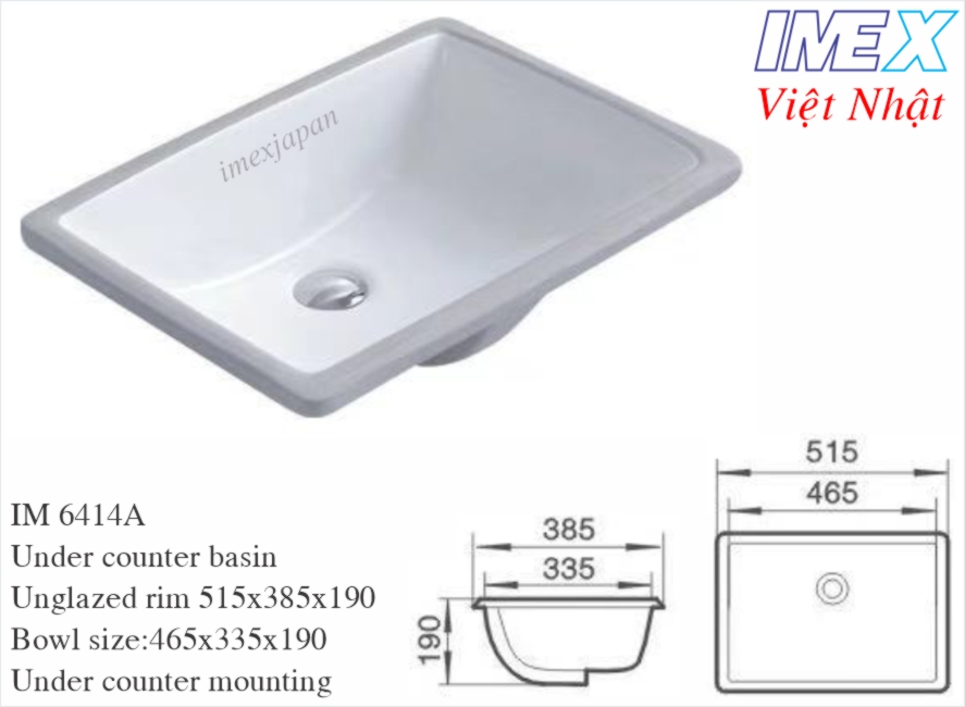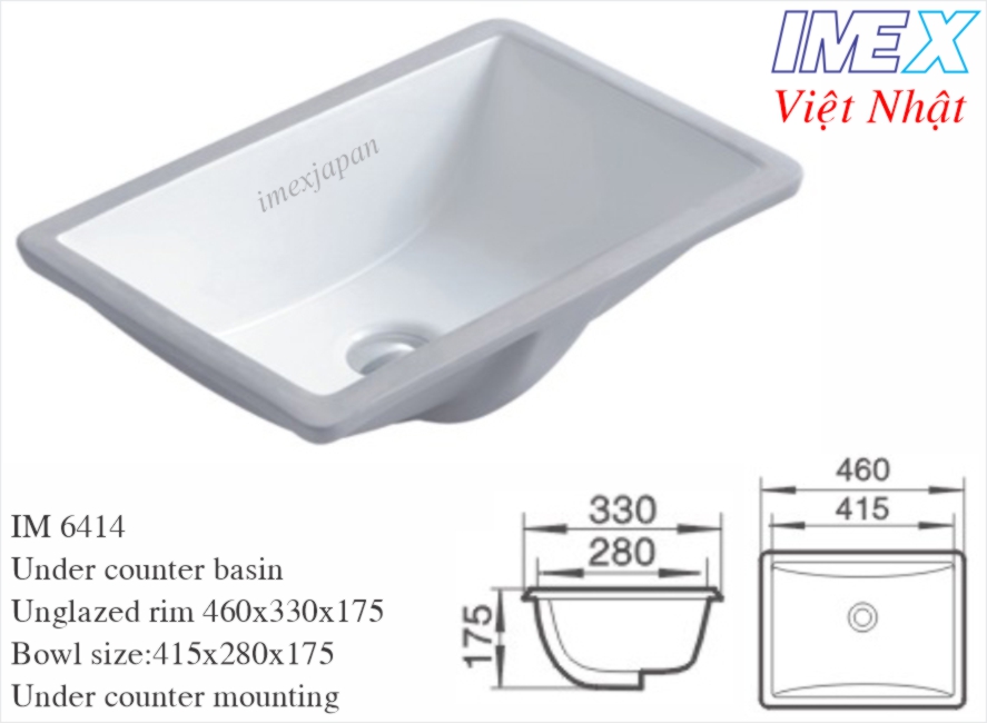 Lavabo đặt âm bàn đá Imex Việt Nhật IM 6414
