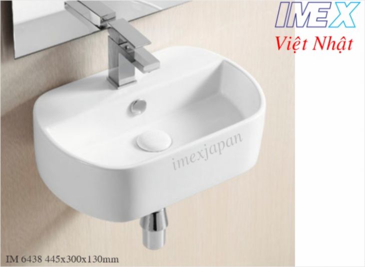 Lavabo treo tường hoặc để bàn IM 6438 men sứ nano chống bám bẩn, có xả tràn.