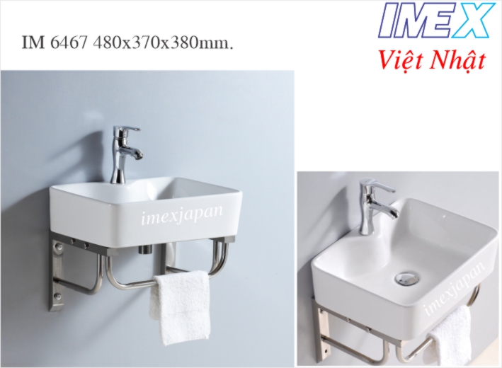 Lavabo treo tường hoặc để bàn Imex Việt Nhật IM 6467 ( giá lavabo 1.300.000đ, chân đỡ inox 600.000đ cả bộ 1.900.000đ)