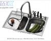 Bồn rửa chén 2 hộc inox 304, xả có giọ lọc rác, cài dao, có lỗ lắp bình đựng nước rửa chén 800x480