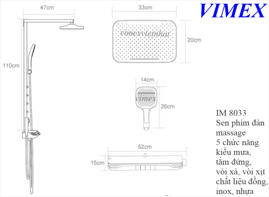 Sen phím đàn massage 5 chức năng: kiểu mưa, tắm đứng, vòi xả, vòi xịt